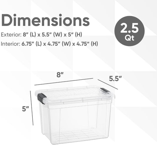 Superio Storage Bins with Lids- 2 Pack, 2.5 Qt Clear Boxes for Organizing, Stackable Plastic Containers- BPA Free, Non-Toxic, Odor Free, Organizer for Home, Office, Dorm