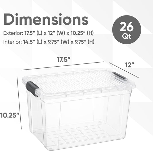Superio Clear Storage Boxes with Lids, 26.5 Quart Plastic Container Bins for Organizing, Stackable Crates, BPA Free, Non Toxic, Odor Free, Organizers for Home, Office, School, and Dorm