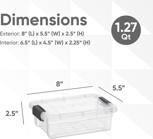 Superio Clear Storage Boxes with Lids, 1.27 Quart Plastic Container Bins for Organizing, Stackable Crates, BPA Free, Non Toxic, Odor Free, Organizers for Home, Office and Dorm, 4 Pack
