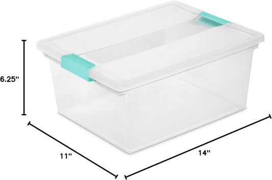 Sterilite 6 Pack Latching Box, Clear Plastic Stackable Storage Bin with Lid, 64 Quart, Mindful Mint