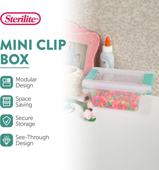 Sterilite 6-Pack Clip Box, Clear Storage for Crafts, Supplies and Office Items, Mini