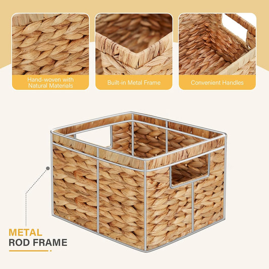 Water Hyacinth Wicker Basket, Decorative Woven Baskets with Built-in Handles, Hand-woven Storage Organizer for Organizing Pantry, Livingroom, Bedroom, Shelves, Toilet(2-PACK, Blended)