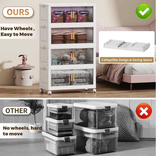 80Gal Stackable Plastic Storage Bins with Lids, Collapsible Closet Organizers and Storage with Wheels for Living Room,Office,Dorm 26.8" W x 14.4" D x 48.6" H, 4 Tier