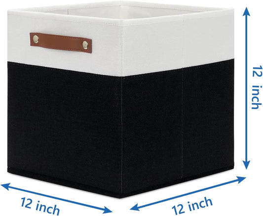 StorageWorks 13x13 Inches Storage Cube, Fabric Storage Bins with PU Handles, Collapsible Organizer Baskets for Closet, Black and White, 4-Pack