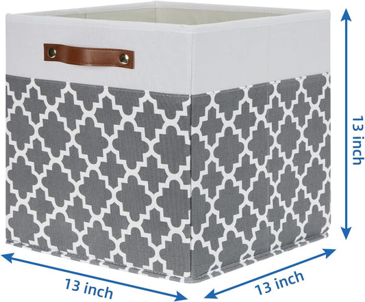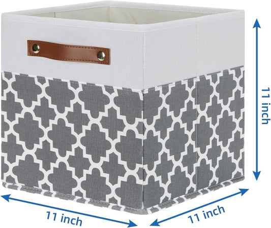 Temary 11x11x11 Cube Storage Bins Cube Organizer Bins 4 Pack Canvas Storage Bin for Home, Cube Storage Basket with Leather Handles(Grey Lattice)