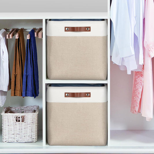 StorageWorks 13x13 Inches Storage Cube, Fabric Storage Bins with PU Handles, Collapsible Organizer Baskets for Closet, Brown and Beige, 6-Pack