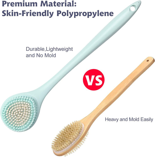 BEDELITE Back Bath Brush Long Handle for Shower of 2 - Soft Shower Brush for Men & Women,Back Brush Scrubber - 16.4" Long Skin Exfoliator for Bath Scrubber Body Brush(2 Pack, Blue & Ivory)