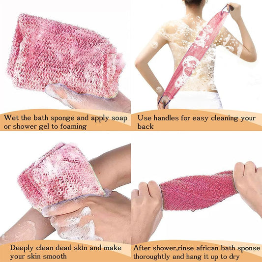 Dr.Pedi 3 Pieces African Net Sponge with Handles Long African Exfoliating Net Washcloth Bath Sponge Net Cloth Wash Net Body Back Scrubber for Shower Loofah