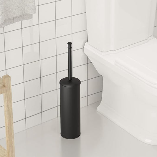 BGL Toilet Brush and Holder Set, Heavy Duty 304 Stainless Steel, Round Base and Long Handle for Bathroom Deep Cleaning, Drip-Proof, Space Saving for Storag, Black