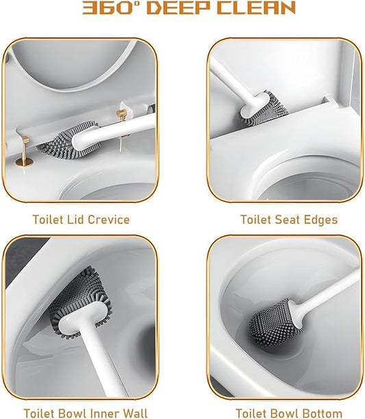Toilet Brush and Holder Set for Bathroom, Deep Cleaning & No-Scratch Toilet Bowl Scrubber, Hygienic & Flexible Rubber Brush Head-for Modern Bathroom & RV