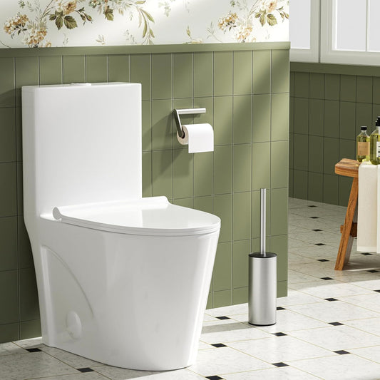 Toilet Brush and Holder Set, Stainless Steel Toilet Bowl Brush with Lid, Rust Proof Toilet Cleaner Brush with Caddy, Durable Bristles, Splash Proof, Ideal for Bathroom (1 Pack, Brushed Nickel)