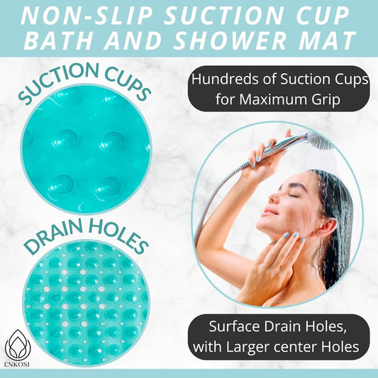 ENKOSI Bath Mat - Large Non Slip Bathtub & Shower Mat - Extra Long 40 x 16 Inch Bathroom Mats for Tub Nonslip Anti Slip Bathmats (40x16 Turquoise 1-Pack)