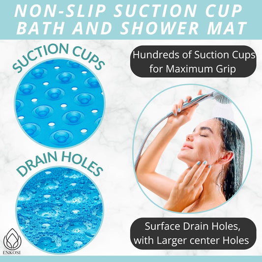 ENKOSI Bath Mat - Large Non Slip Bathtub & Shower Mat - Extra Long 40 x 16 Inch Bathroom Mats for Tub Nonslip Anti Slip Bathmats (40x16 Clear Blue 1-Pack)