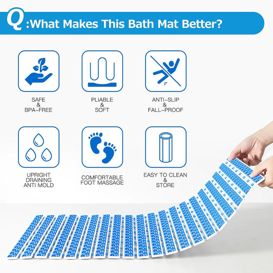 UNEEDE Kids Bathtub Mat Non Slip Shower Mat for Toddlers, Washable Anti Slip Tub Surface, Soft Rubber Mat for Bathtub Shower, Waterproof Bathtub Essentials for Children