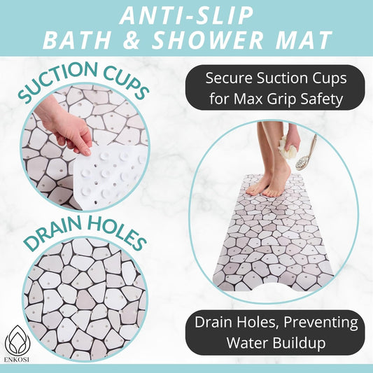 ENKOSI Bath Mat – Large 40 x 16 Inch Non-Slip Bathtub Mat with Secure Suction Cups & Drain Holes – Extra Long Bathroom Shower Mat for Tub with Stone Path Design (40x16 Stone Path)