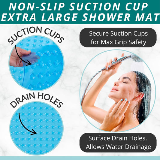 ENKOSI Extra Large Square Non Slip Shower Mat - 31 x 31-inch XL Bathroom Shower Mat - Square Shower Matts for Shower Stall Floors | Secure Suction Cups and Drain Holes (31x31 Aqua Blue)