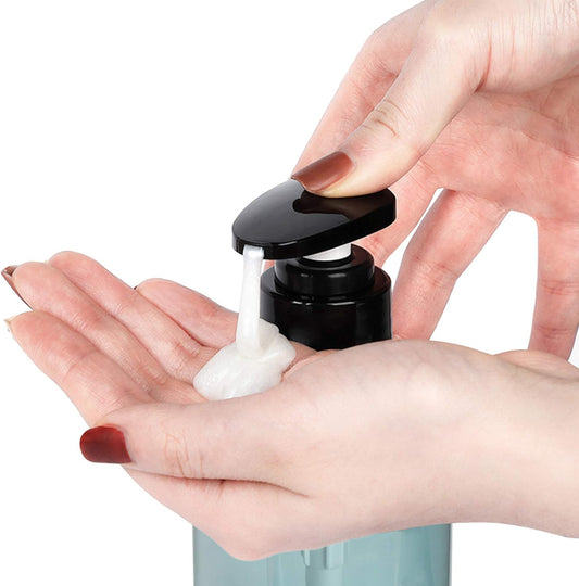 Refillable Clear PET Plastic 16 oz Body Wash Bottle with Black Plastic Pump Dispenser - Chrome Accent Waterproof Labeled Bottle