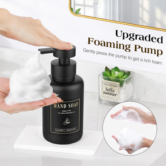 Luxspire Foaming Soap Dispenser, Glass Foam Pump Soap Dispenser, Non-Slip Hand Soap Dispenser with 5 Waterproof Labels, 15 Oz Refillable Liquid Soap Dispenser for Bathroom & Kitchen, Black, 1 Pack
