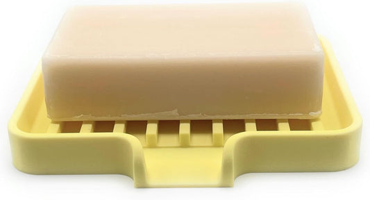 Happitasa Silicone Soap Dish Tray and Sponge Holder with Drain Chute, Pack of 2 | Bathroom and Kitchen Sink Organizer Caddy (Pale Yellow, 5.2"x4", 7.2 Ounces)