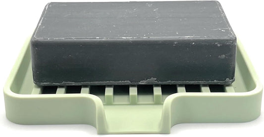 Happitasa Silicone Soap Dish Tray and Sponge Holder with Drain Chute | Bathroom and Kitchen Sink Organizer Caddy (Pistachio, 9"x3.5", 5.6 Ounces)