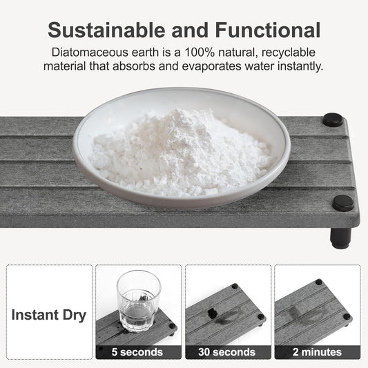 Water Absorbing Stone Tray, Fast Drying Sink Tray for Bathroom & Kitchen Counter, Diatomite Absorbent Coasters, Instant Dry Sink Caddy Organizers Mat, Dish Soap Dispenser Sponge Holder, Dark Gray