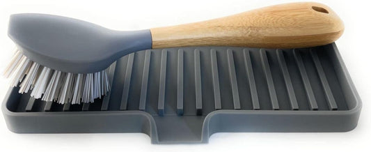 Happitasa Silicone Soap Dish Tray and Sponge Holder with Drain Chute | Bathroom and Kitchen Sink Organizer Caddy (Grey, 12"x4", 7.4 Ounces)
