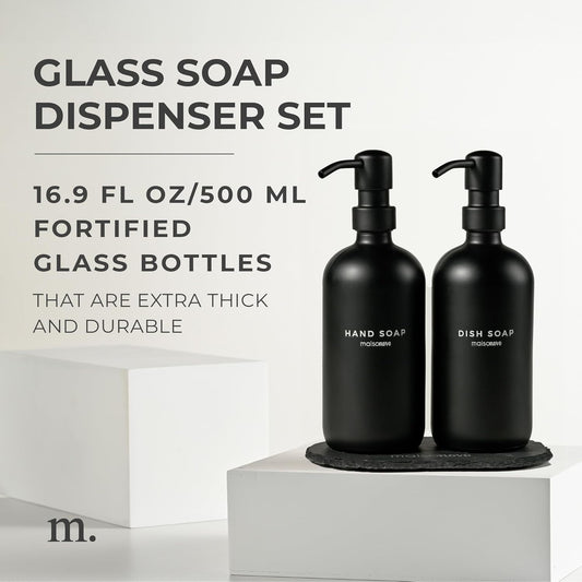 MaisoNovo Soap Dispenser 3-Piece Set | 16.9oz Black Bottles with Black Stainless Steel Pumps
