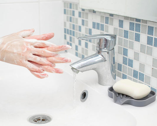 Yasmen Silicone Bathroom Soap Dishes, Sink Sponge Holder for Kitchen, Rubber Soap Dish with Drain, Shower Soap Sponge Tray, Sink or Counter Organizer, for Bar Soap, Bottle, Dish Soap Dispenser-Grey