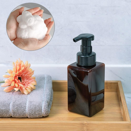 Foaming Soap Dispenser, 450ml(16oz) Refillable Modern Square Pump Bottle for Shampoo, Body Wash, Liquid Soap, PETG Plastic Empty Soap Dispenser for Kitchen, Bathroom, Hospital. 2 Pcs (Brown)