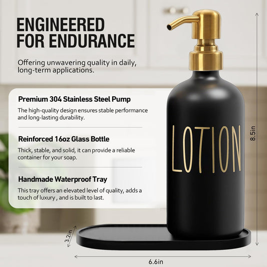 MOMEEMO Glass Soap Dispenser with Stainless Steel Pump, Contains Lotion Dispenser, Hand Soap Dispenser & Tray. (Black & White)