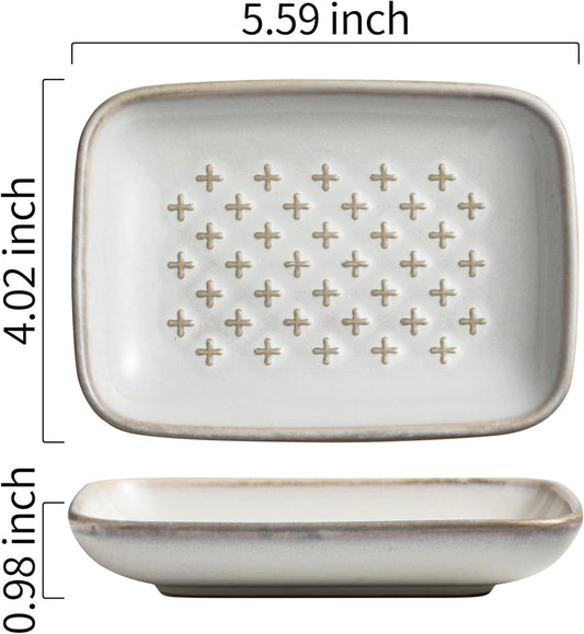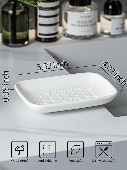 Gomakren Soap Dish, Shower Soap Holder, Ceramic Soap Dishes for Bar Soap Sponge Shampoo, Soap Saver Tray for Bathroom Kitchen Sink Counter, 5.5 Inch, White