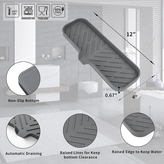 Silicone Bathroom Soap Dishes with Drain Spout-Bathroom and Kitchen Sink Organizer,Sponge Holder,Dish Soap Tray,Perfect for Dispenser,Scrubber,Bottle,Cup on Sink or Counter-Grey 12"×4"