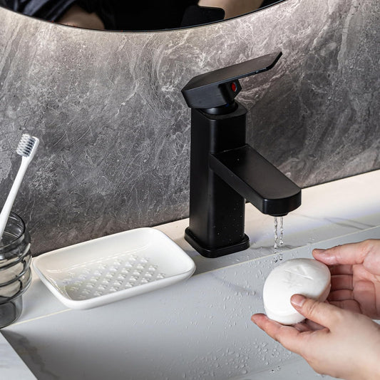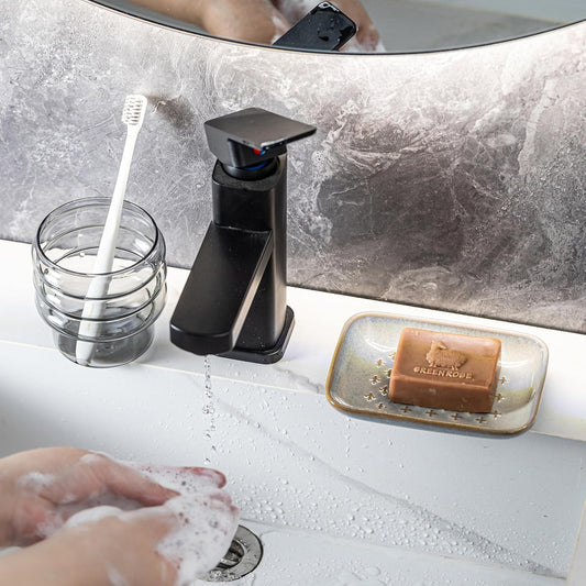 Gomakren Soap Dish, Shower Soap Holder, Ceramic Soap Dishes for Bar Soap Sponge Shampoo, Halloween Soap Saver Tray for Bathroom Kitchen Sink Counter, 5.5 Inch, Black