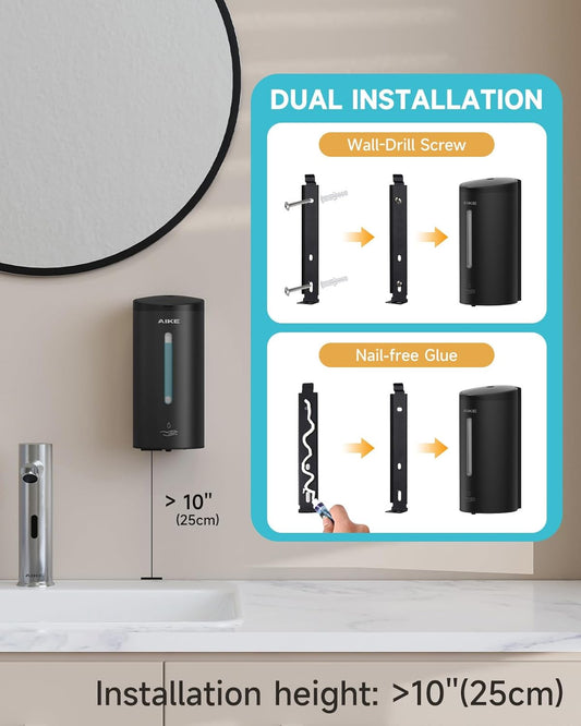 AIKE Automatic Wall Mount Liquid Soap Dispenser, Commercial Stainless Steel with 25oz Large Capacity Save Time Effort and Cost,Model AK1205(Matte Black)