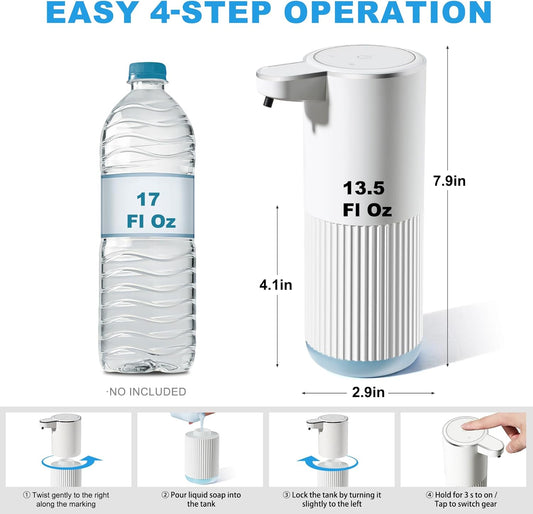 Automatic Foaming Soap Dispenser Touchless(Upgrade Auto & Manual Modes) - IPX7 Waterproof - Adjustable Foam Volume -1500mAh USB Rechargeable Hand Soap Dispenser