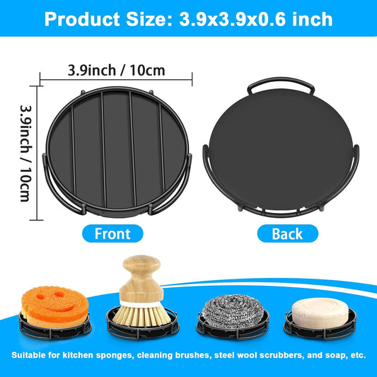 Stainless Steel Smiley Face Dish Sponge Holder, Black Sink Caddy for Kitchen Countertop, Soap Bar Dishes with Drainage, Self Draining Soap Dish Saver Shampoo Holder Tray Caddy for Scrubber