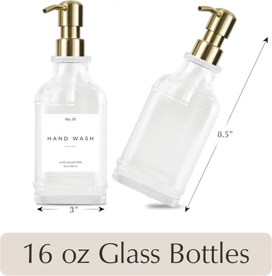 Emerson Essentials Soap Dispenser, Dish Soap Dispenser, Soap Bottle Bathroom Set, Hand Soap Farmhouse Home, Kitchen Soap Dispenser Set - Glass Soap Dispenser with Pump and Labels, 16 Oz, 2 Pack