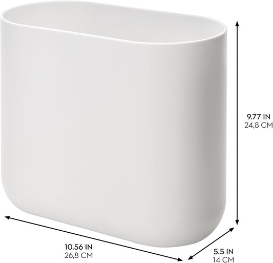 iDesign Slim Oval Plastic Waste Basket The Cade Collection, 10.56” x 5.5” x 9.77”, White