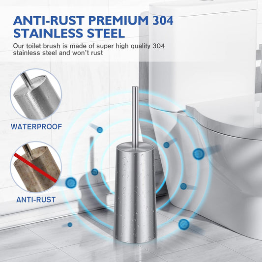 Toilet Brush and Holder, Toilet Brush 304 Stainless Steel, Toilet Bowl Brush for Bathroom Toilet-Ergonomic, Elegant,Durable