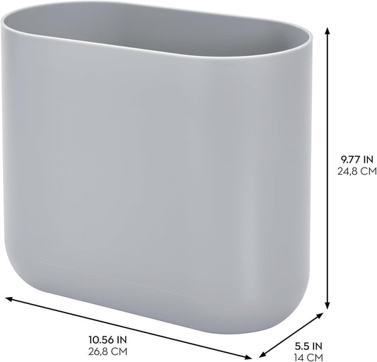 iDesign Cade Oval Slim Trash, Compact Waste Basket Garbage Can for Bathroom, Bedroom, Home Office, Dorm, College, Matte Gray