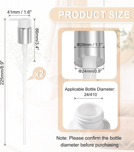 uxcell 2 Pcs Soap Dispenser Pump Heads, Hand Soap Dispensers Top Pumps Replacement Clip-on Pumphead for Standard 24/410 Neck Size Bathroom Lotion Shampoo Bottle, Silver White