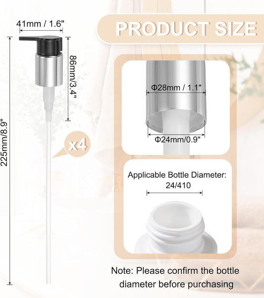 uxcell 4 Pcs Soap Dispenser Pump Heads, Hand Soap Dispensers Top Pumps Replacement Clip-on Pumphead for Standard 24/410 Neck Size Bathroom Lotion Shampoo Bottle, Silver Black