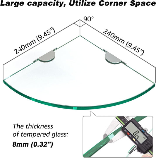 Corner Glass Shower Caddy 2 Pack 8MM-Thick Tempered Glass Shelf No Drilling Wall Mount Corner Mounted Shelves Space Saver Adhesive Bathroom Home Shelf Shampoo Holder Organizer Strong Adhesion