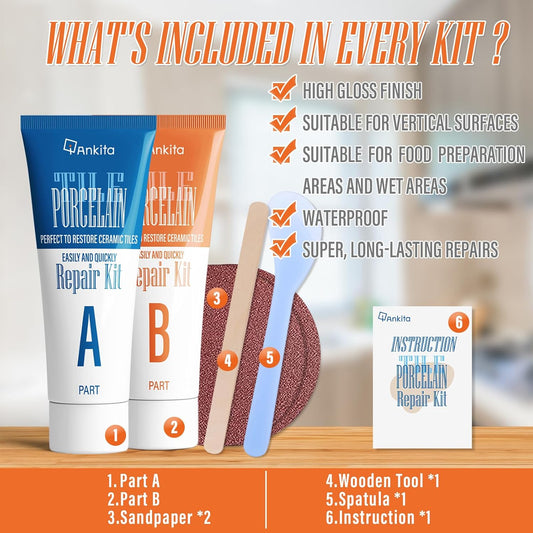 Porcelain Repair Kit White, Sink & Tub Repair Kit to Quickly Fix Tub Chips and Sink Cracks with High Bond Strength, Porcelain Sink Repair Kit for Tub, Tile, Sink and Toilet(Ivory White)
