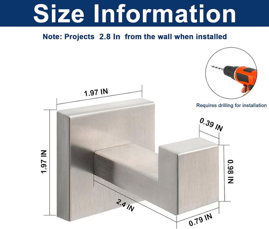 NearMoon Bath Towel Hooks -SUS304 Stainless Steel Square Clothes Robe Hooks Hanger, Heavy Duty Coat Hooks for Bathroom Livingroom Hotel Kitchen Garage, Wall Mounted - 3 Pack (Brushed Nickel)