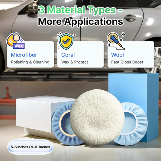6 Pack Buffing Pads, Polishing Pad Covers, Microfiber & Wool for 5–6 Inch Buffer Polisher; Car Buffer Accessories for Car Detailing Kit; Wax, Polishing Compound & Polish Finishing, Durable Set