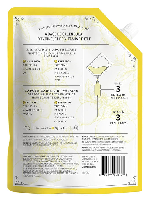 J.R. Watkins Gel Hand Soap Refill Pouch, Scented Liquid Hand Wash for Bathroom or Kitchen, USA Made and Cruelty Free, 34 fl oz, Lemon, 2 Pack