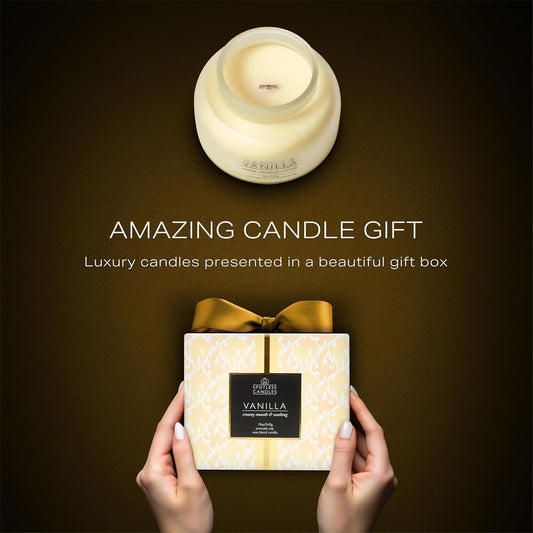 Candle Vanilla Bean 22oz with Wooden Wick in a Presentation Gift Box & Protective Shipper - Vanilla Scented Candles - Large Jar Candles