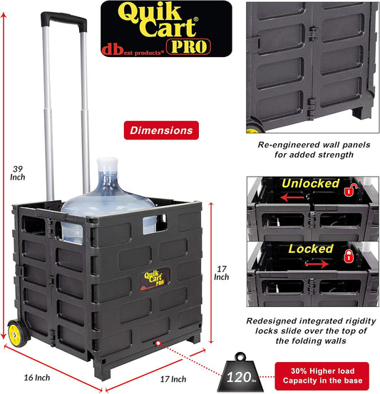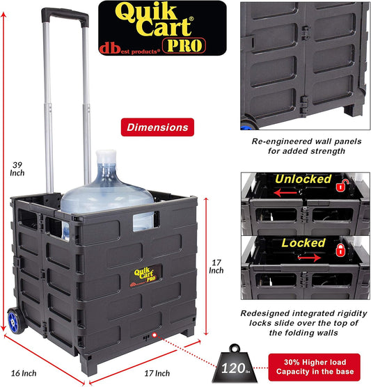 dbest products Quik Cart Pro Wheeled Rolling Crate Teacher Utility with seat Heavy Duty Collapsible Basket with Handle, Black