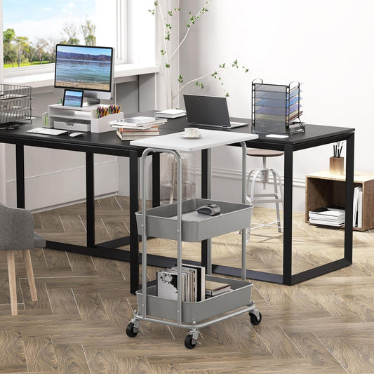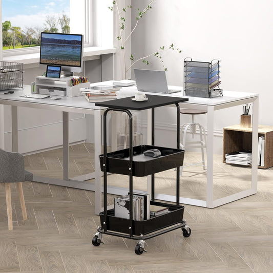 Mind Reader 3-Drawer Rolling Storage Cart, Office Organizer with Wood Top, Multipurpose Portable Cabinet with Wheels, Metal Mesh, Black
